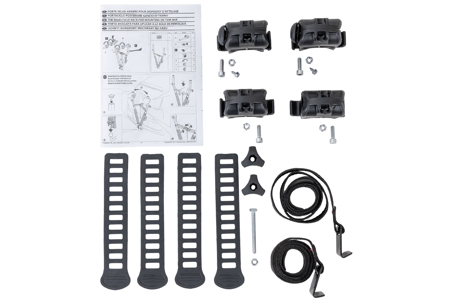 W zestawie znajdują się również pasy do zabezpieczenia rowerów.