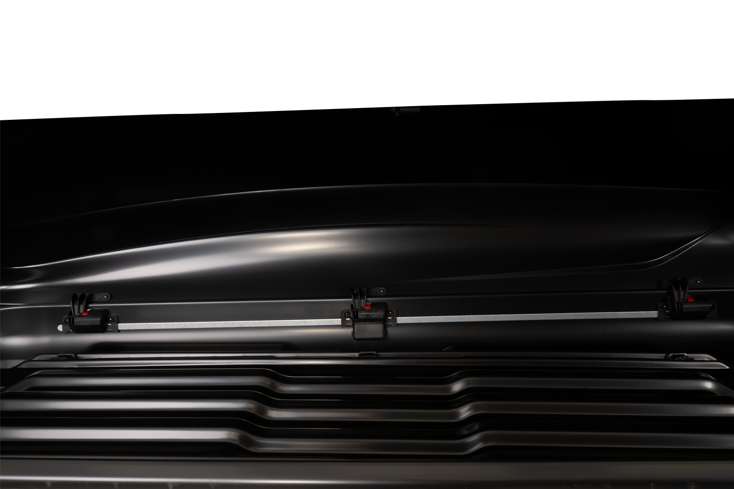 Ładowność 75 kg w połączeniu z wagą wynoszącą zaledwie 18,5 kg zapewnia doskonały kompromis między wytrzymałością a wygodą montażu i demontażu na aucie. Box został wykonany z wytrzymałego tworzywa ABS, odpornego na promieniowanie UV oraz zmienne warunki pogodowe, co gwarantuje jego trwałość i niezawodne użytkowanie przez wiele lat. Dno wzmocnione metalowymi listwami zwiększa sztywność i gwarantuje stabilność przewożonego ładunku pod pełnym obciążeniem.