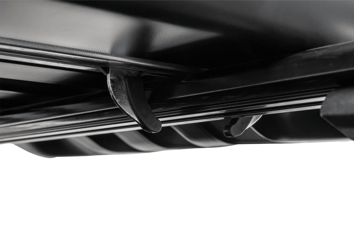 Mocowanie Premium Fit osadzone jest w prowadnicach pozwalających na dopasowanie się do rozstawu belek bagażnika dachowego, który musi znajdować się w zakresie od 55 cm do 95 cm.