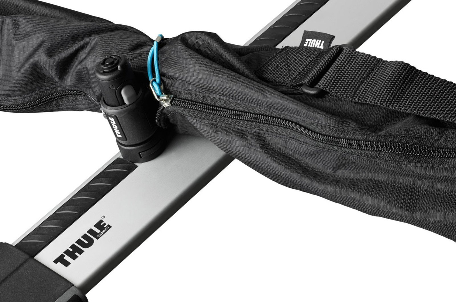 Wyposażony w podwójne suwaki i dopasowany do uchwytu Thule SkiClick 7291. Regulowany pasek na ramię ułatwia przenoszenie.