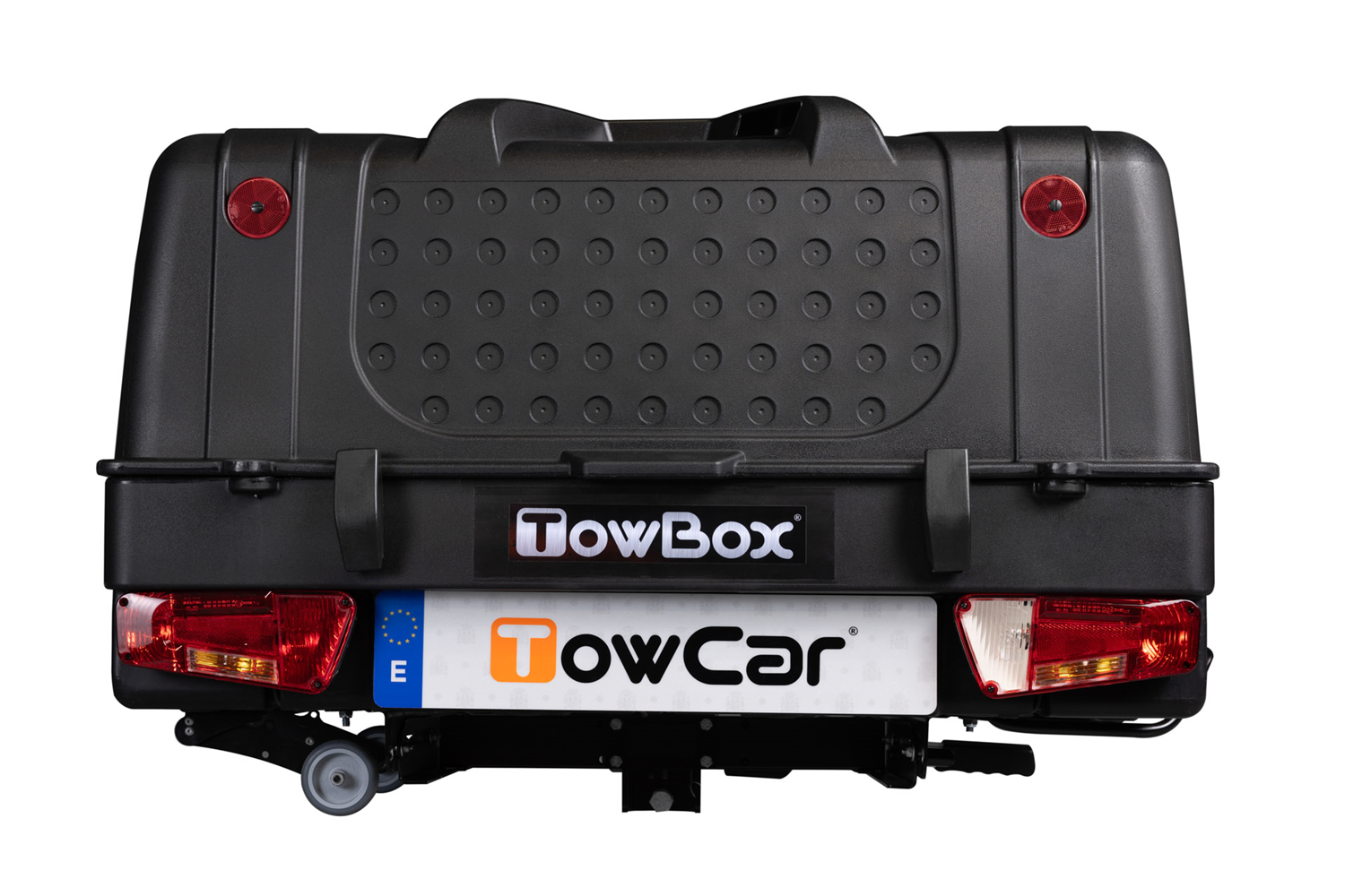 - Towbox V1 to bardzo ciekawa alternatywa dla boxa dachowego. Jest to specjalnie przygotowany box, który możesz przewozić na haku auta. Posiada funkcję odjeżdżania i uchylania co pozwala na swobodny dostęp do bagażnika samochodu.