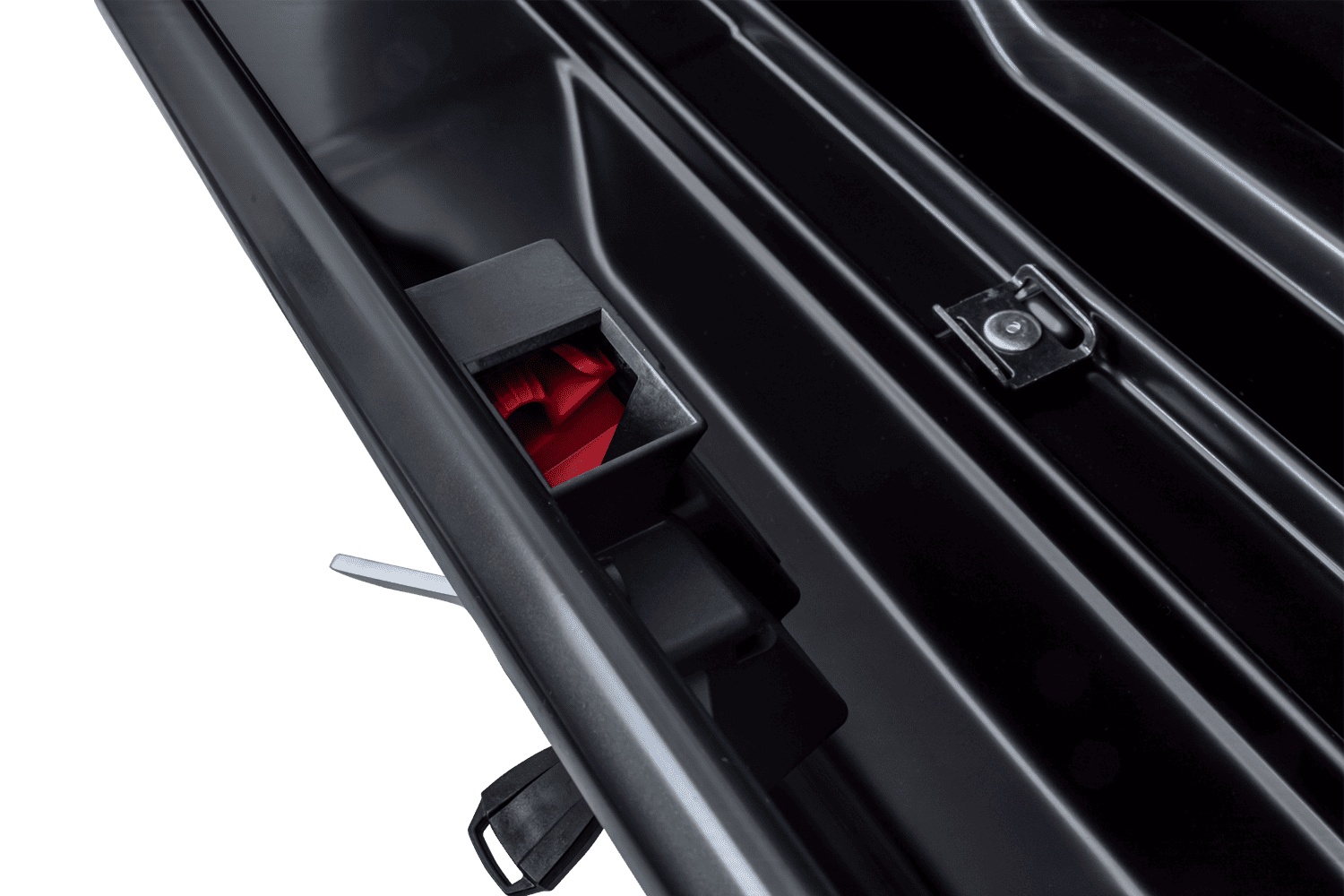 Producent zastosował zaawansowany system Safe Guard, który chroni bagaż przed niekontrolowanym otwarciem pokrywy i sygnalizuje gdy jest ona prawidłowo zamknięta. Trzypunktowy centralny zamek zapewnia stabilne i szczelne domknięcie, a klucz można wyjąć dopiero po pełnym zamknięciu pokrywy, co dodatkowo zwiększa bezpieczeństwo użytkowania. Dla kierowcy to pewność, że przewożone bagaże są zawsze odpowiednio zabezpieczone.