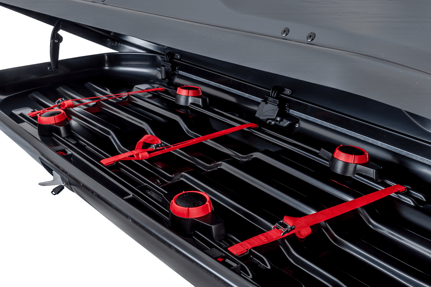 Długość zewnętrzna 215 cm sprawia, że box bez problemu pomieści narty czy deski snowboardowe do 210 cm, a także walizki, wózek dziecięcy czy sprzęt kempingowy. Pojemność 530 litrów daje możliwość zabrania naprawdę dużej ilości bagażu, z wygodnym dostępem do środka. Ładowność 75 kg w połączeniu z wagą własną 21,5 kg zapewnia optymalny balans między wytrzymałością a wydajnością konstrukcji.