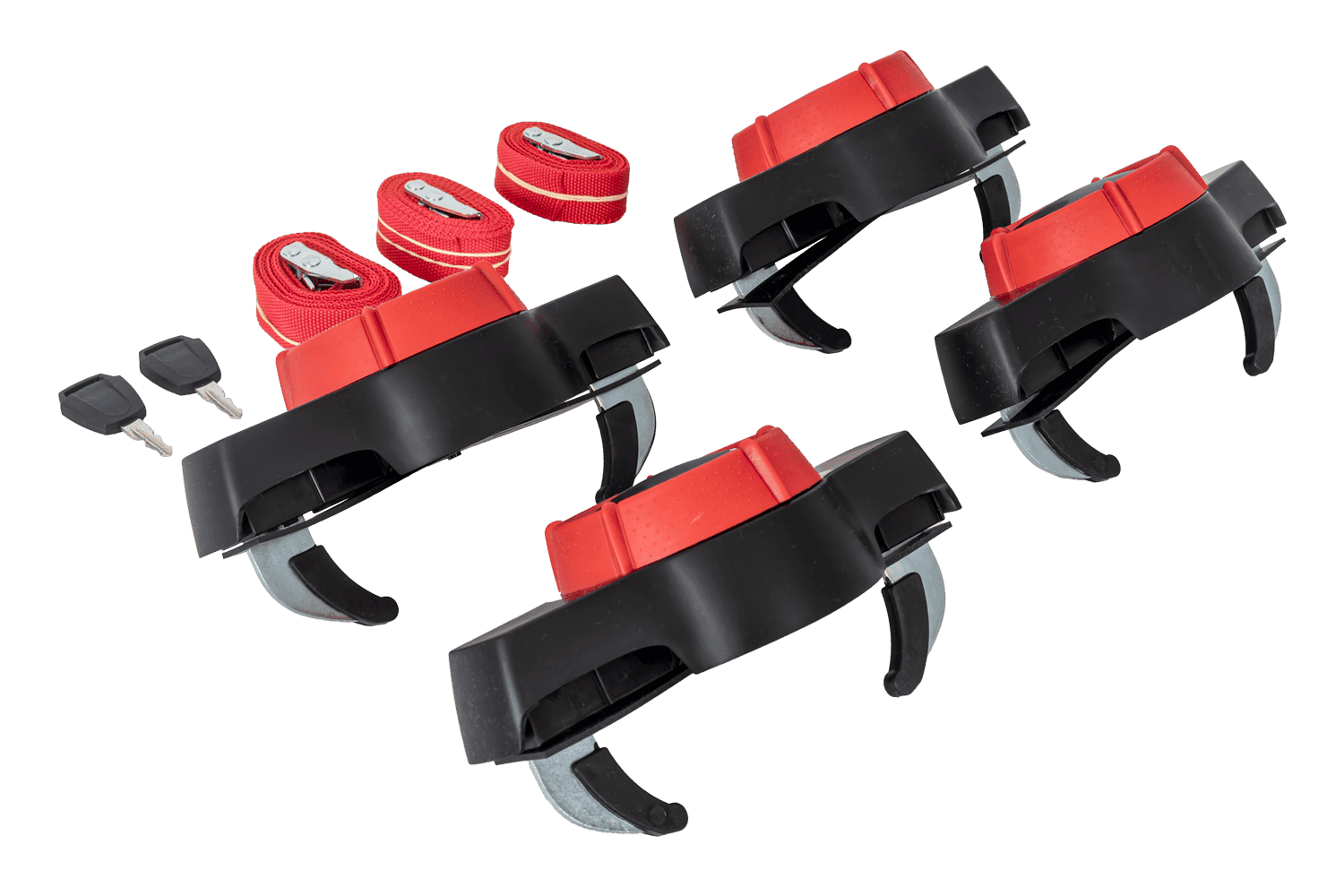 W zestawie znajdują się również paski tekstylne do zabezpieczenia bagażu (box Traxer posiada dedykowane miejsca do przymocowania pasków).
