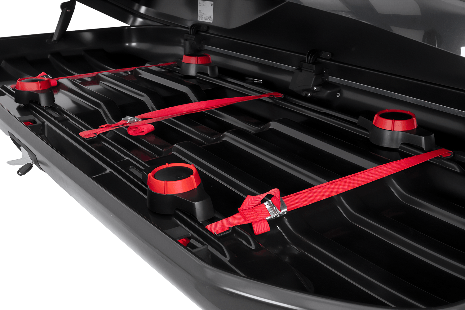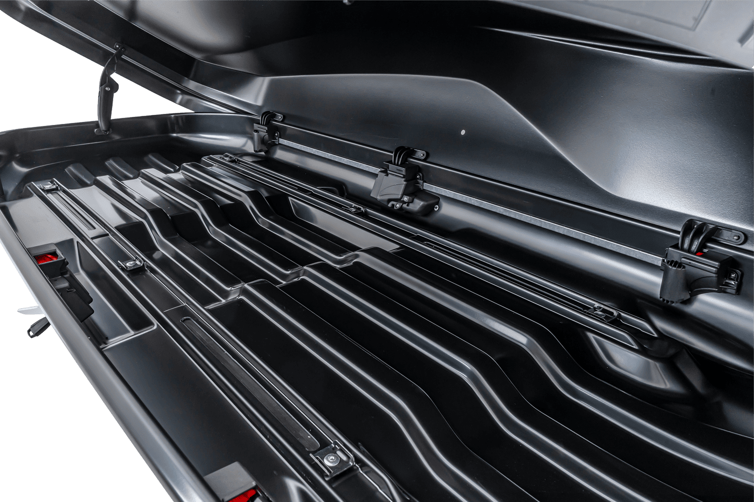 Długość zewnętrzna 215 cm sprawia, że box bez problemu pomieści narty czy deski snowboardowe do 210 cm, a także walizki, wózek dziecięcy czy sprzęt kempingowy. Pojemność 530 litrów daje możliwość zabrania naprawdę dużej ilości bagażu, z wygodnym dostępem do środka. Ładowność 75 kg w połączeniu z wagą własną 21,5 kg zapewnia optymalny balans między wytrzymałością a wydajnością konstrukcji.