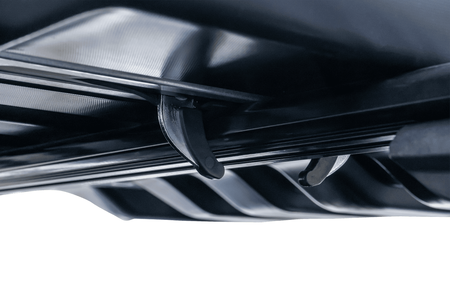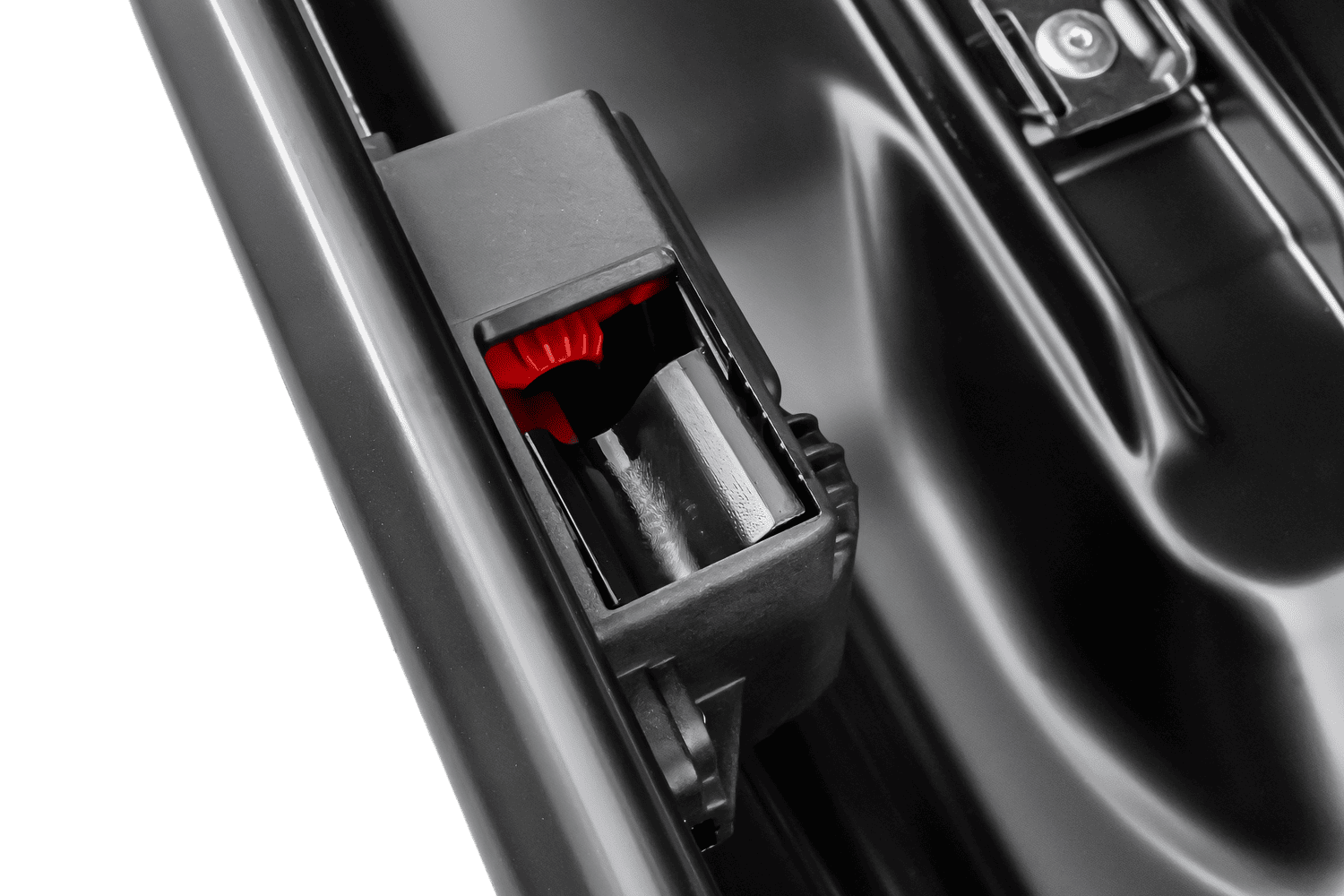Mocowanie Premium Fit osadzone jest w prowadnicach pozwalających na dopasowanie się do rozstawu belek bagażnika dachowego, który musi znajdować się w zakresie od 55 cm do 95 cm.
