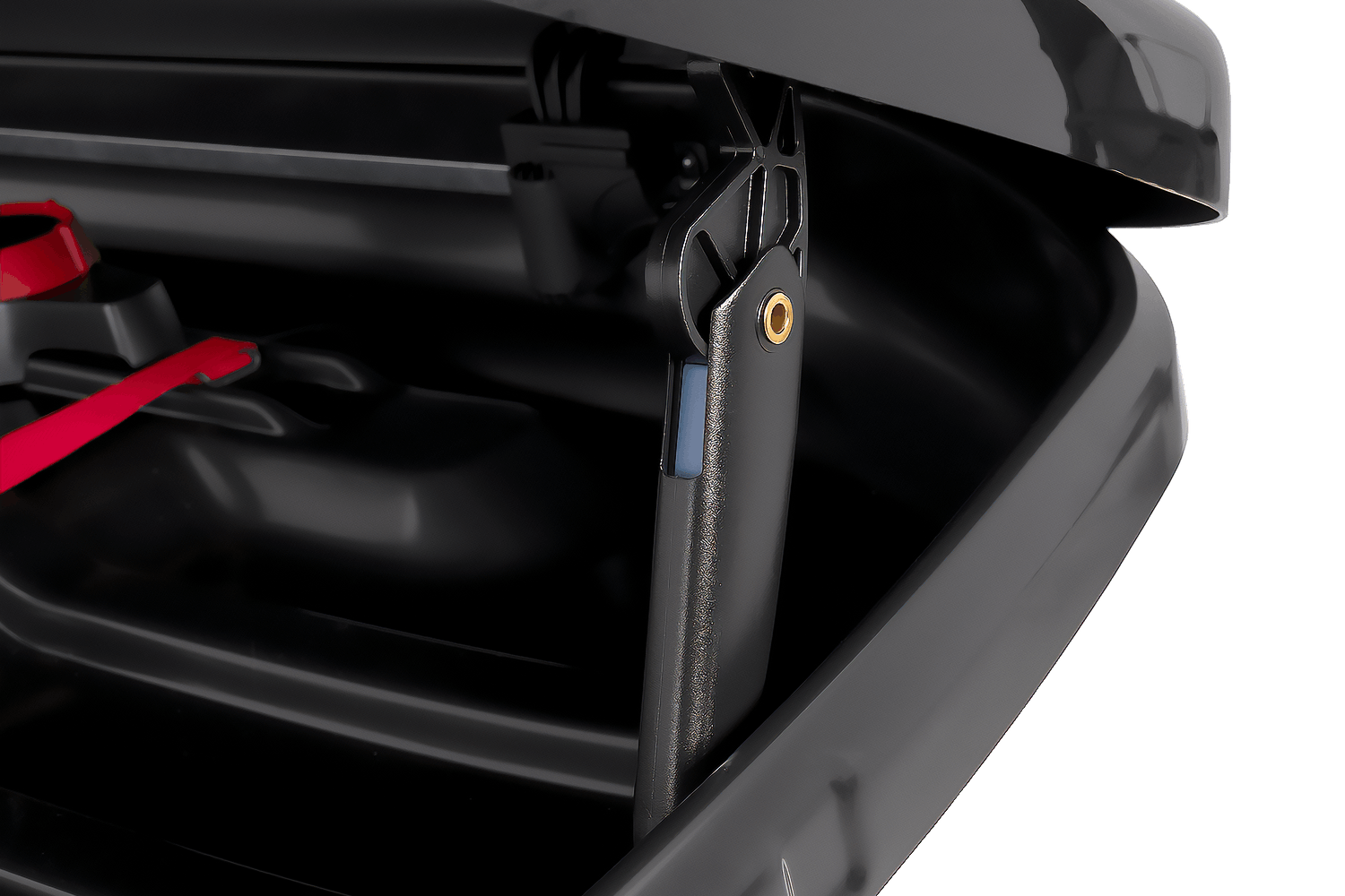 Producent zastosował zaawansowany system Safe Guard, który chroni bagaż przed niekontrolowanym otwarciem pokrywy i sygnalizuje gdy jest ona prawidłowo zamknięta. Trzypunktowy centralny zamek zapewnia stabilne i szczelne domknięcie, a klucz można wyjąć dopiero po pełnym zamknięciu pokrywy, co dodatkowo zwiększa bezpieczeństwo użytkowania. Dla kierowcy to pewność, że przewożone bagaże są zawsze odpowiednio zabezpieczone.