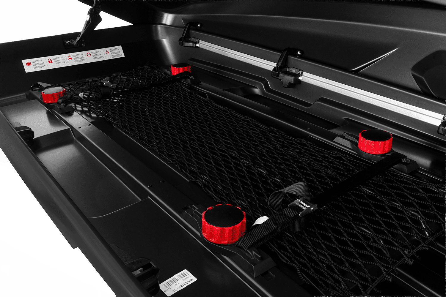 W zestawie z kufrem otrzymujesz siatkę oraz paski tekstylne. Pozwalają one odpowiednio rozłożyć i zabezpieczyć ładunek w trakcie jazdy.