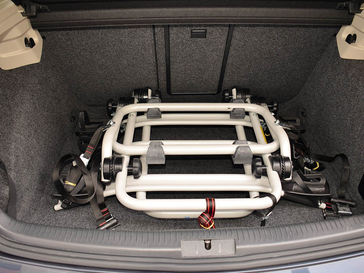 Zamontowany bagażnik (bez rowerów) umożliwia otwarcie klapy samochodu, natomiast po złożeniu uchwytu zajmuje on mało miejsca.