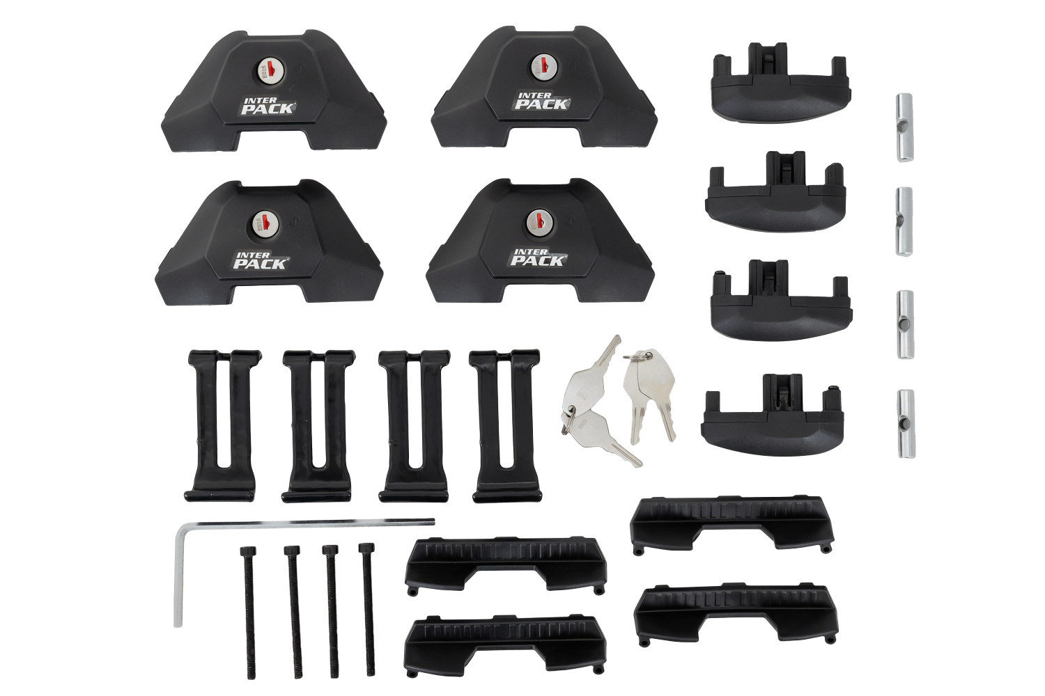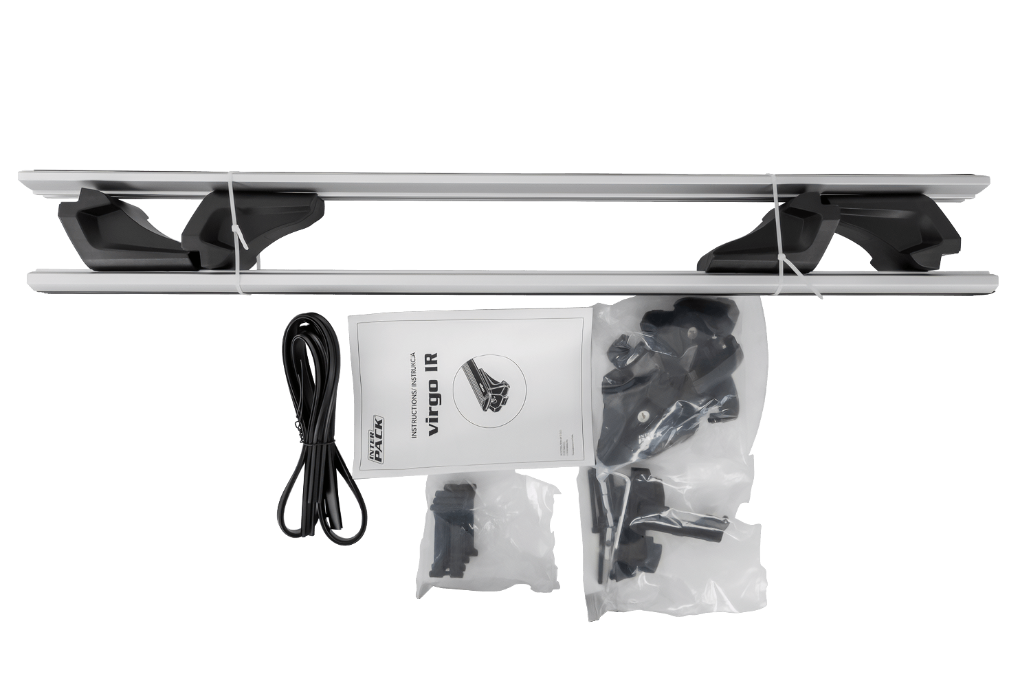 • Bagażnik dachowy Inter Pack Virgo IR to kompletny bagażnik przystosowany do montażu na relingach zintegrowanych. Oparty na aluminiowych, aerodynamicznych belkach ze standardowym kanałem montażowym t-profil.