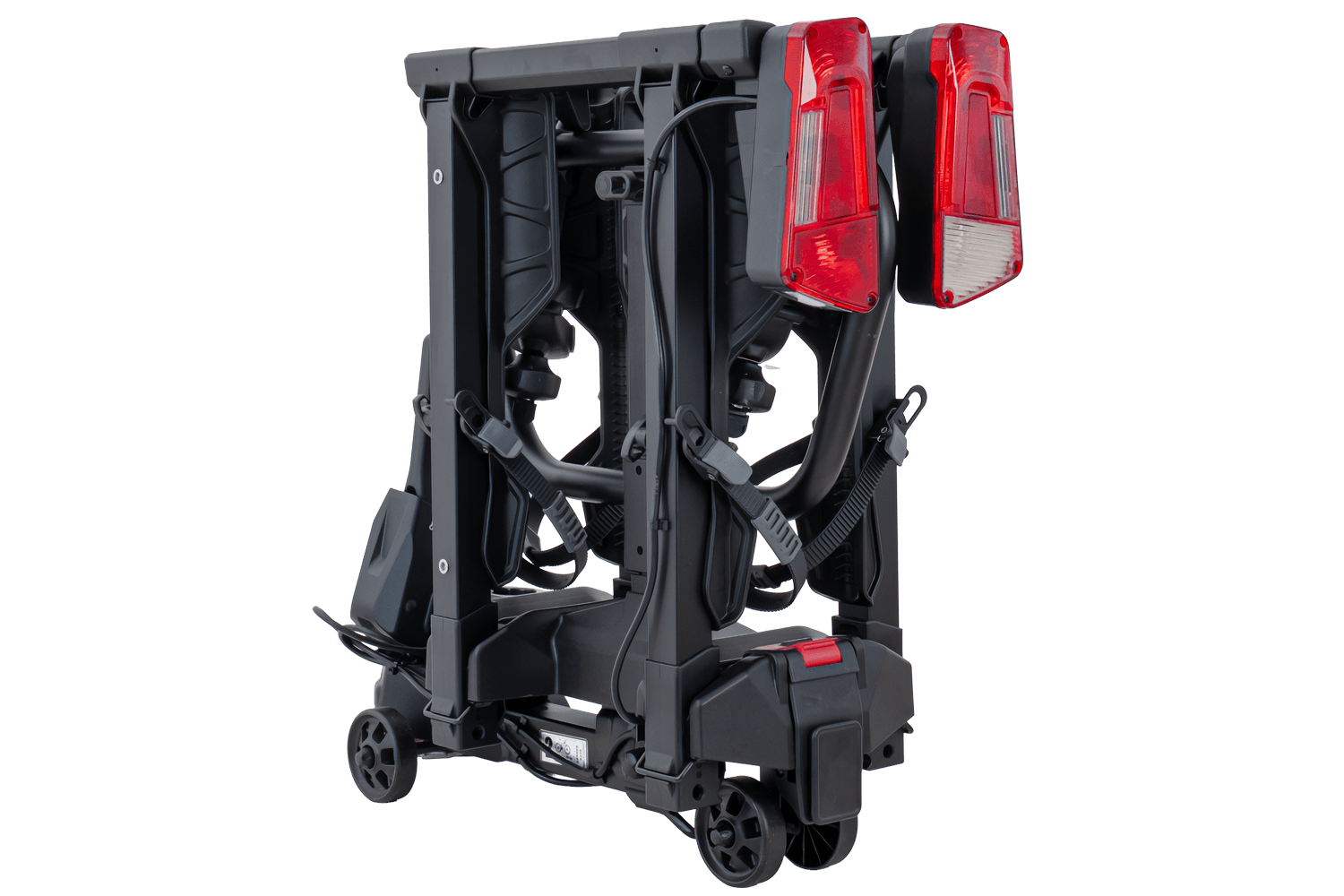 Kompaktowa budowa oraz możliwość łatwego złożenia sprawiają, że bagażnik nie zajmuje dużo miejsca podczas przechowywania – zmieści się w bagażniku auta, piwnicy czy garażu. Ułatwia to też transport a także montaż i demontaż platformy rowerowej na kuli haka.