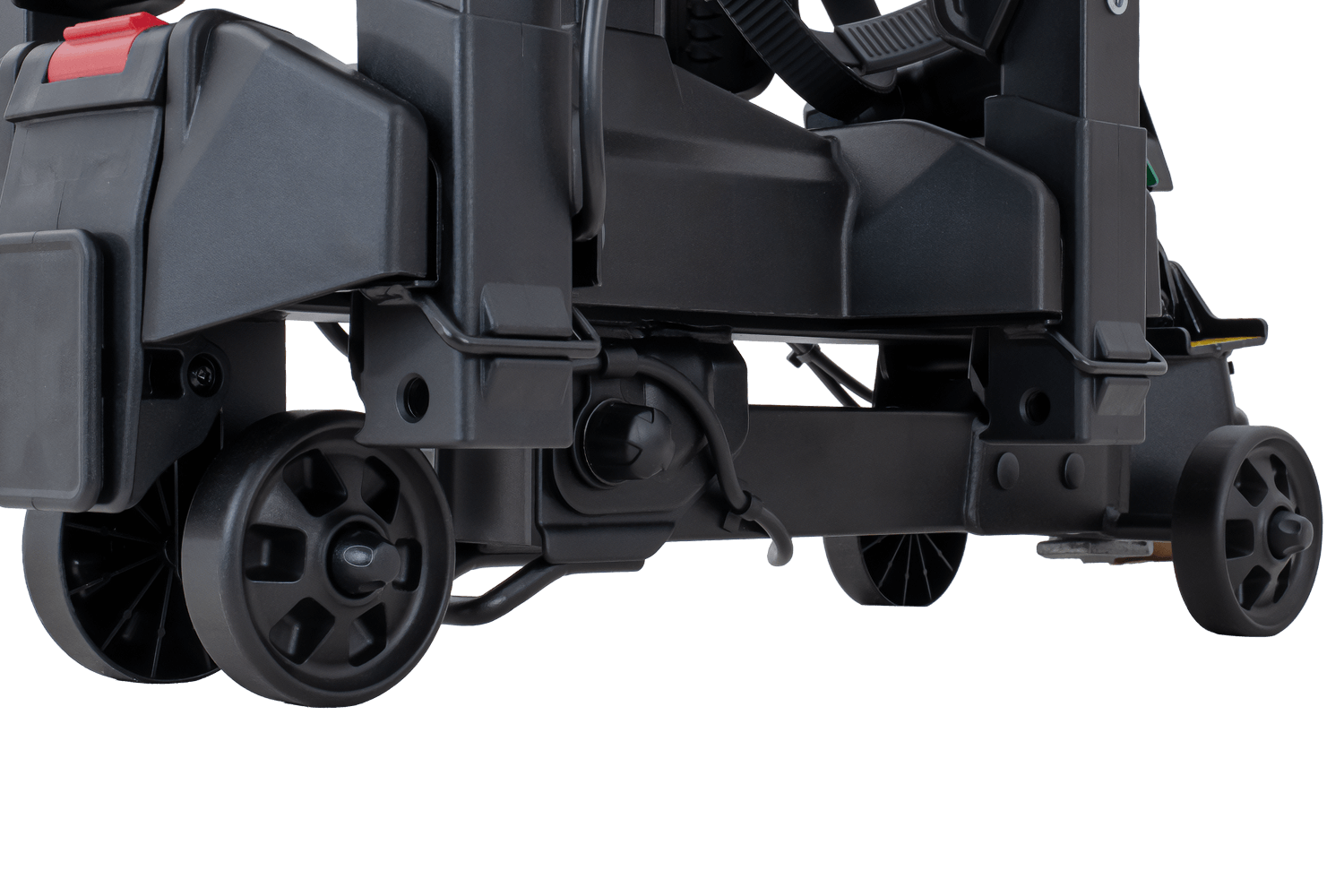 Cała konstrukcja charakteryzuje się w pełni składaną konstrukcją ale również wyjątkową wytrzymałością, pozwalając na transport rowerów o łącznej masie do 60 kg. Spider 2E PRO został wyposażony w funkcję odchylania, dzięki której dostęp do bagażnika auta pozostaje możliwy nawet przy zamontowanych rowerach. Dla wygody użytkownika, platforma została wyposażona również w zintegrowane kółka transportowe.