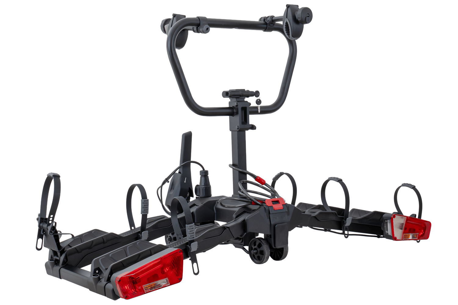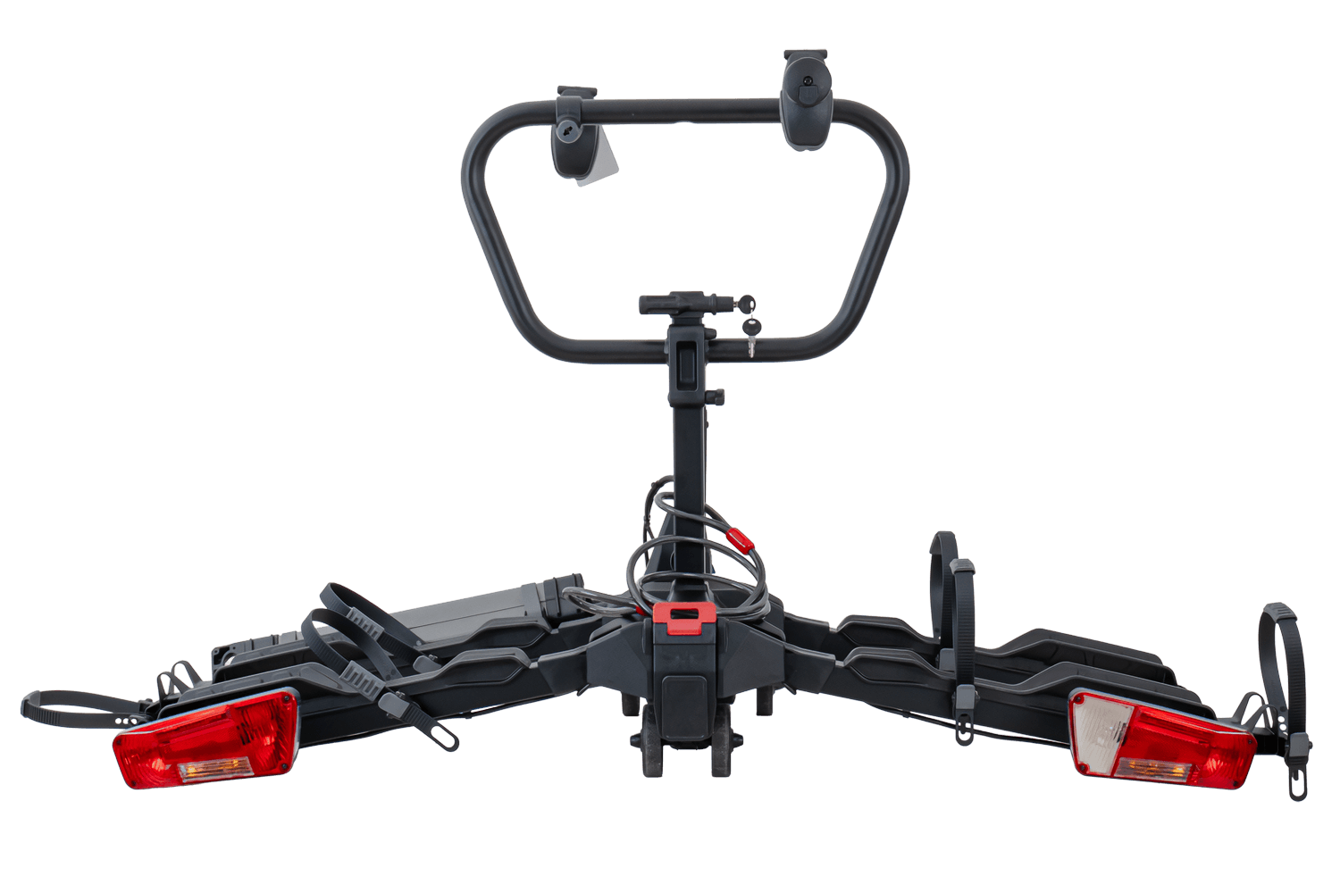 Platforma umożliwia przewóz 2 rowerów elektrycznych o wadze do 30 kg każdy, co sprawia, że jest idealnym rozwiązaniem dla miłośników wszystkich rowerów elektrycznych. Stabilne mocowanie do kuli haka holowniczego odbywa się przy pomocy systemu Conical z dźwignią i zintegrowanym systemem regulacji zacisku, który gwarantuje szybki, intuicyjny montaż i pewne mocowanie bagażnika w każdych warunkach. System mocowania został dodatkowo zabezpieczony zamkiem.