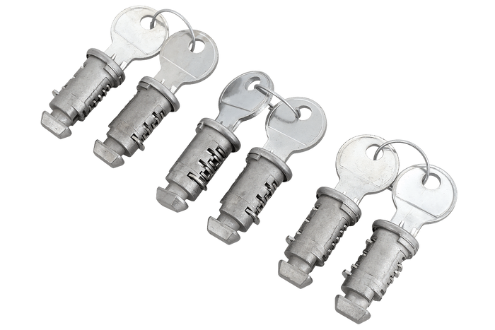 - Uniwersalne wkładki z kluczami do bagażników bazowych, rowerowych i narciarskich umożliwiają łatwe dopasowanie zamków. Zapewniają bezpieczeństwo oraz długą żywotność użytkowania.