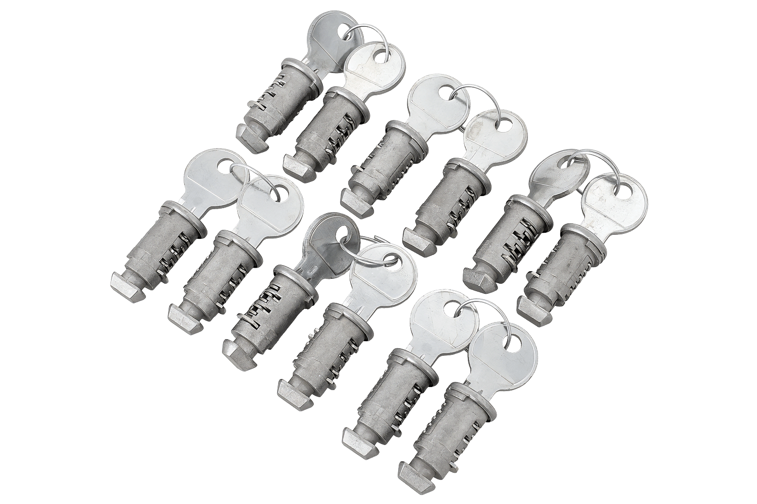 - Uniwersalne wkładki z kluczami do bagażników bazowych, rowerowych i narciarskich umożliwiają ujednolicenie systemu zamykania. Zapewniają bezpieczeństwo, trwałość oraz wygodne użytkowanie.