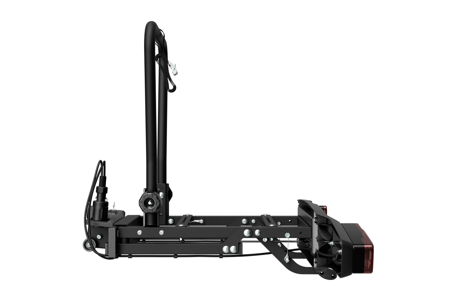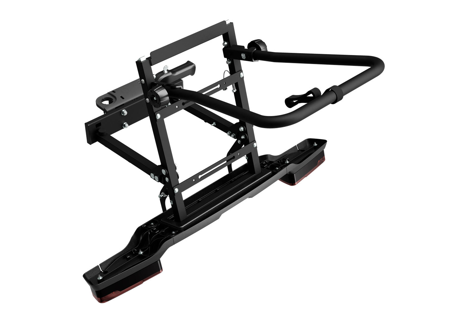 Wykonana z wytrzymałych materiałów konstrukcja nośna zapewnia udźwig do 60 kg, co pozwala na swobodny transport zwykłych bagaży lub nawet ciężkich e-bike’ów. Baza montowana jest do haka holowniczego pojazdu i wyposażona w certyfikowany system oświetlenia oraz tablicę rejestracyjną, zgodnie z europejskimi normami drogowymi. Dzięki temu zapewnia pełną widoczność pojazdu i bezpieczeństwo podczas jazdy.