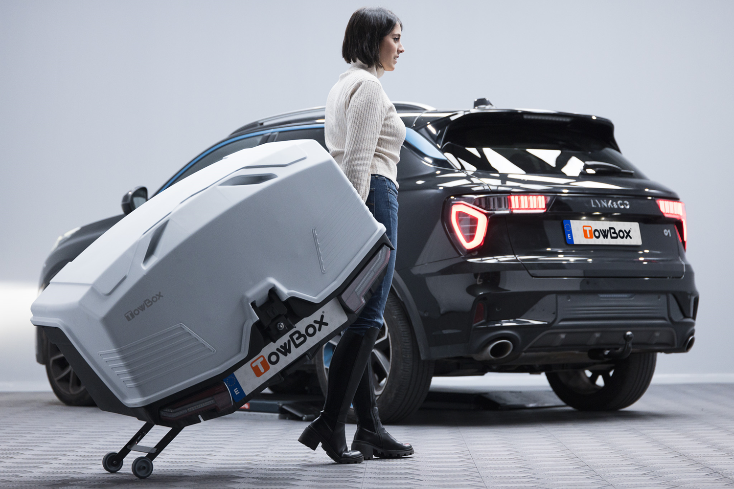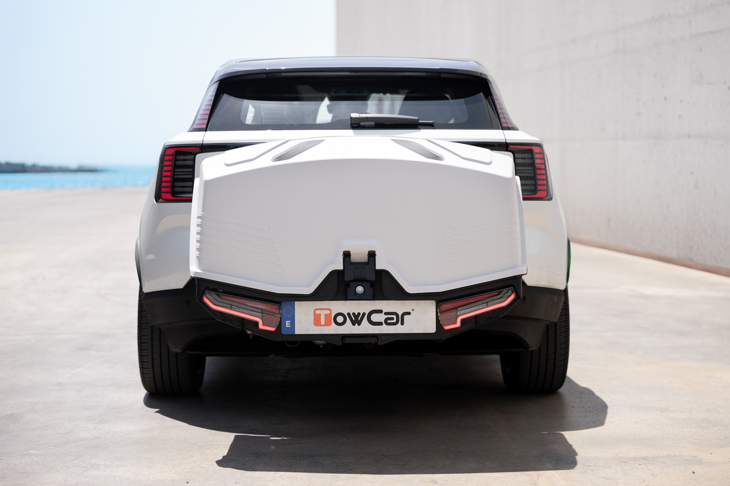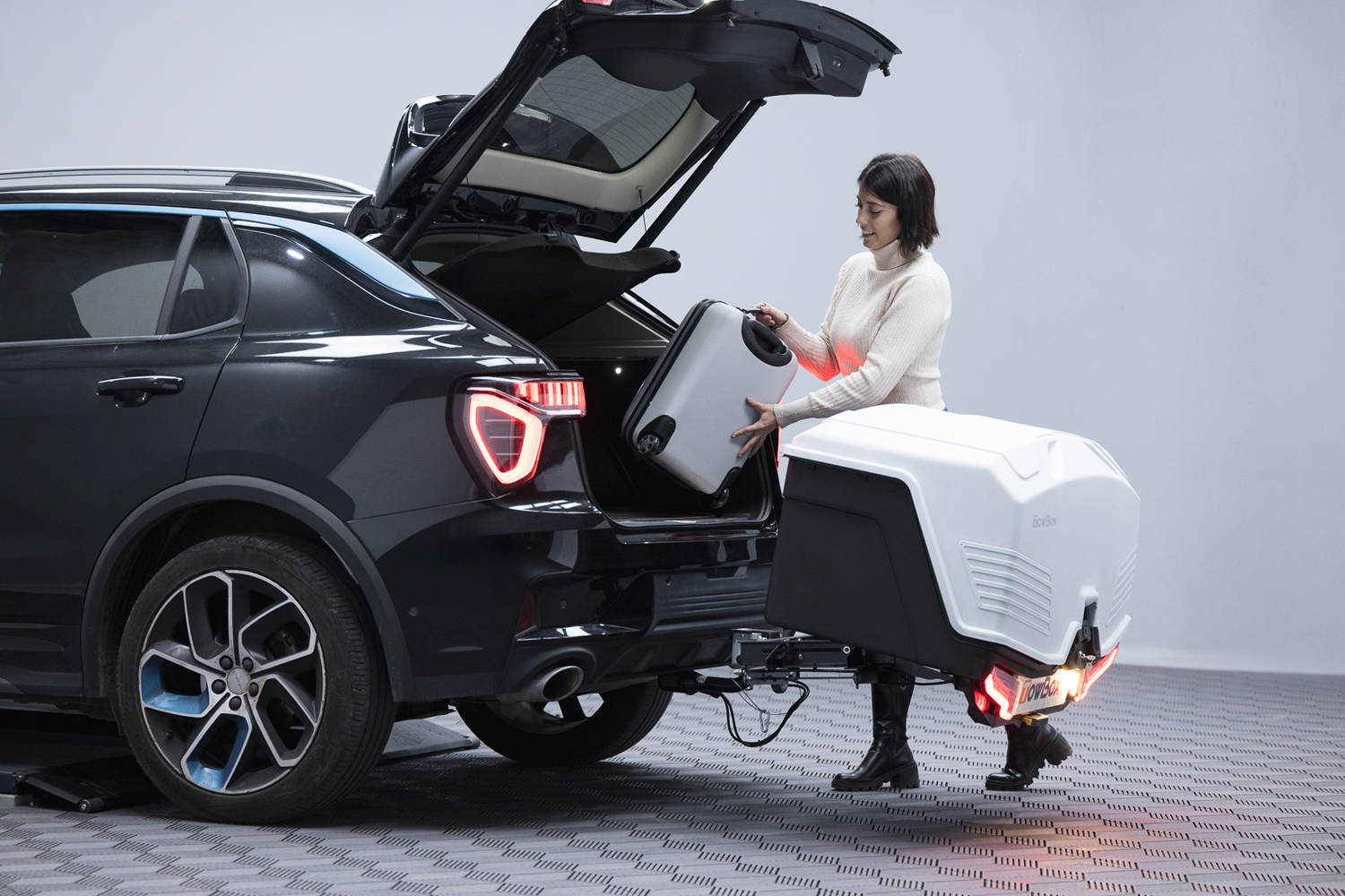 TowBox Alpha wyposażono w pełne zintegrowane tylne oświetlenie LED z dynamicznymi kierunkowskazami, które poprawiają widoczność i bezpieczeństwo na drodze. Składany system kół ułatwia zarówno montaż bagażnika na haku, jak i jego przemieszczanie, gdy nie jest zamontowany na pojeździe. Dzięki poprawionej aerodynamice bagażnik zapewnia cichą i stabilną jazdę oraz sprzyja oszczędności paliwa lub energii w porównaniu do boksów dachowych.