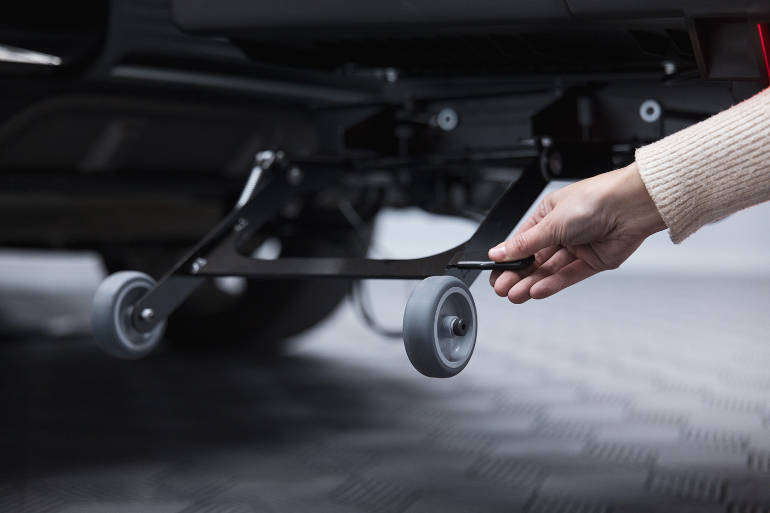- składany system kół ułatwiający montaż na haku oraz przemieszczanie bagażnika poza pojazdem