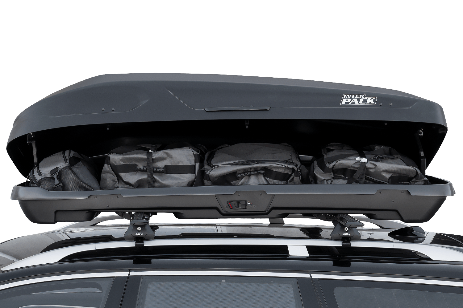 - Box dachowy Inter Pack Monsun PRO L czarny mat, pojemność 550 l. Lekki i wytrzymały, udźwig 75 kg. System zamykania Smart Lock i Rapid Fit zapewniają bezpieczeństwo oraz szybki montaż z obustronnym otwieraniem. Pasy do bagażu w komplecie.