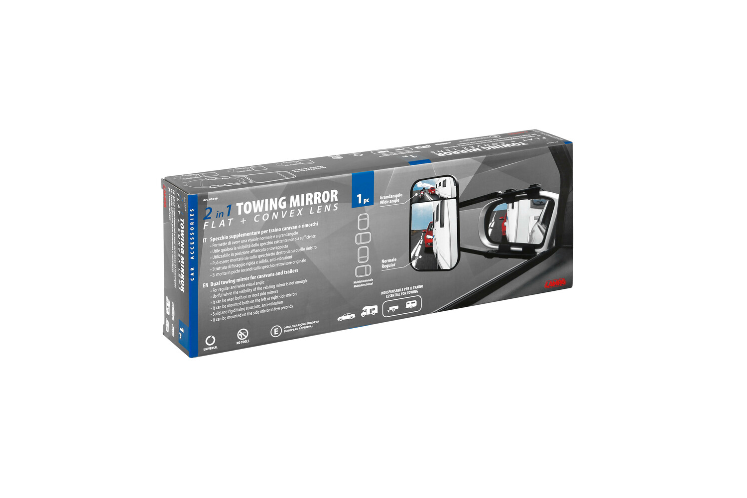 Lusterko do holowania z soczewką płaską i wypukłą to uniwersalne lusterko dodatkowe montowane na fabrycznym lusterku bocznym, które znacząco poszerza pole widzenia podczas jazdy z przyczepą. Podwójna optyka zapewnia jednocześnie precyzyjną obserwację oraz szerszy kąt widzenia, a pełna regulacja pozwala ustawić optymalny kąt obserwacji. Zaciskowy system montażu z paskami drabinkowymi pasuje do większości lusterek i stabilnie dociska lusterko do obudowy, ograniczając drgania podczas jazdy. Lusterko jest uniwersalne – można je zamontować zarówno po lewej, jak i po prawej stronie pojazdu. Produkt posiada europejską homologację ECE R46.
