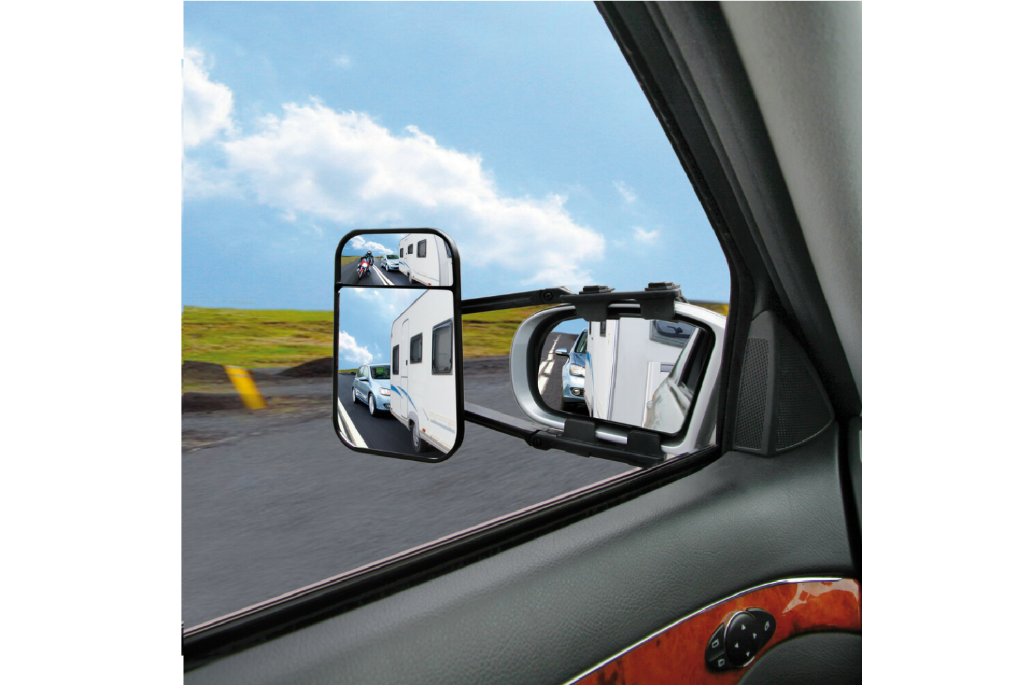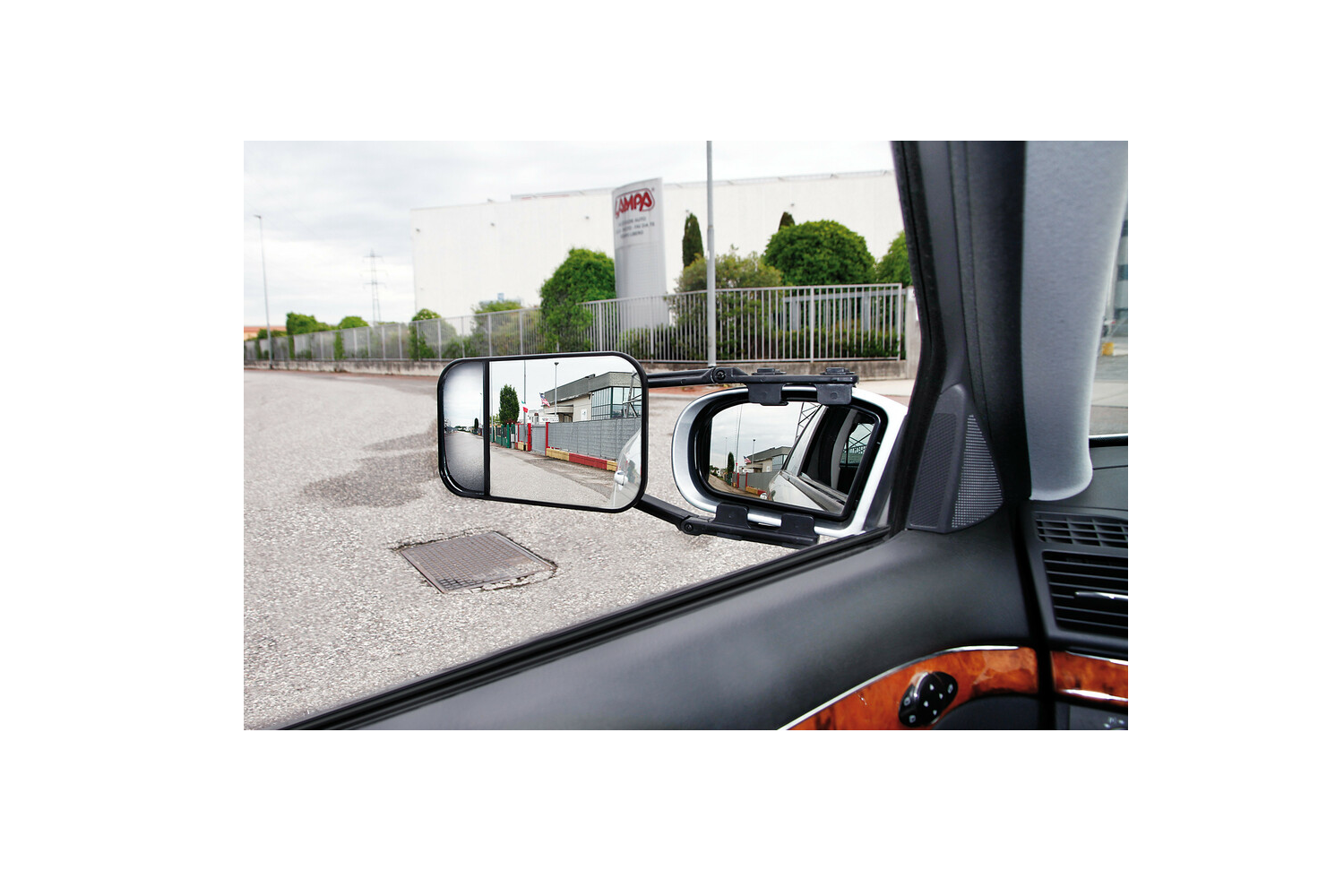 - Lusterko holownicze montowane na fabryczne lusterko zwiększa pole widzenia podczas jazdy z przyczepą. Podwójna optyka (płaska i wypukła) ogranicza martwe strefy i ułatwia zmianę pasa, cofanie oraz parkowanie. Szybki montaż zaciskowy.