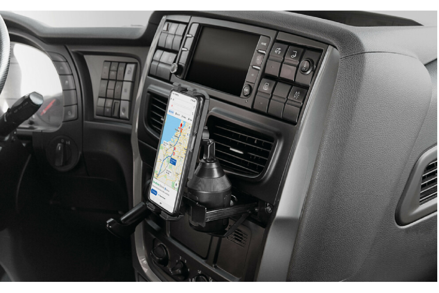 Uchwyt montowany w miejscu na kubek to wygodne rozwiązanie dla kierowców, którzy chcą bezpiecznie korzystać z nawigacji, rozmów w trybie głośnomówiącym czy sterowania muzyką. Stabilnie utrzymuje urządzenie w zasięgu wzroku, nie zasłania szyby ani nawiewów i pomaga ograniczyć rozproszenie podczas jazdy. Dodatkowo organizer przewodu ładowania pomaga utrzymać porządek na konsoli środkowej.