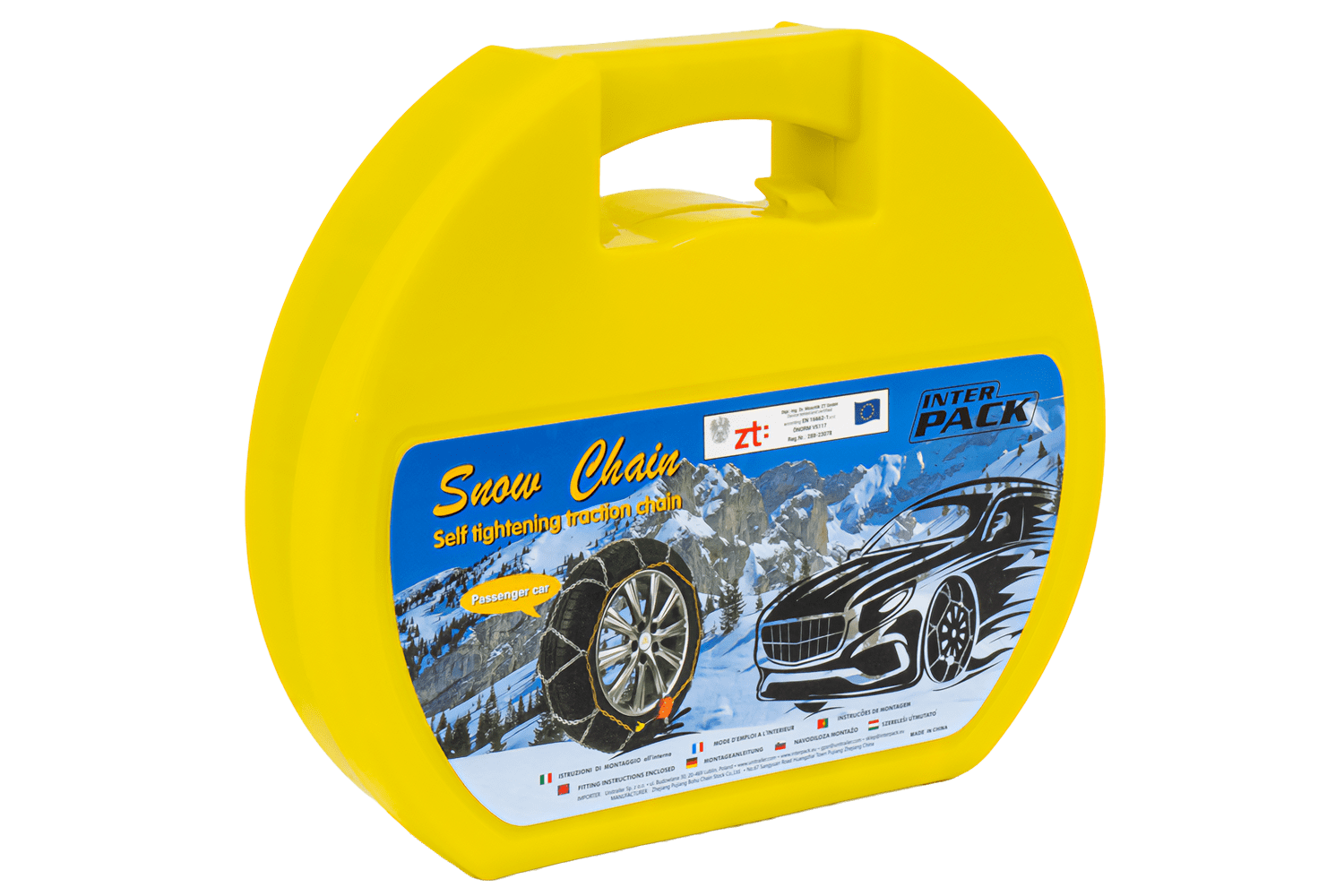 - Inter Pack KNS to łańcuchy z samonapinaczem, które gwarantują komfortowy montaż i skuteczną przyczepność. Wykonane z hartowanej stali 9 mm, posiadają certyfikaty Ö-NORM V5117 i EN 16662-1, potwierdzające najwyższą jakość.