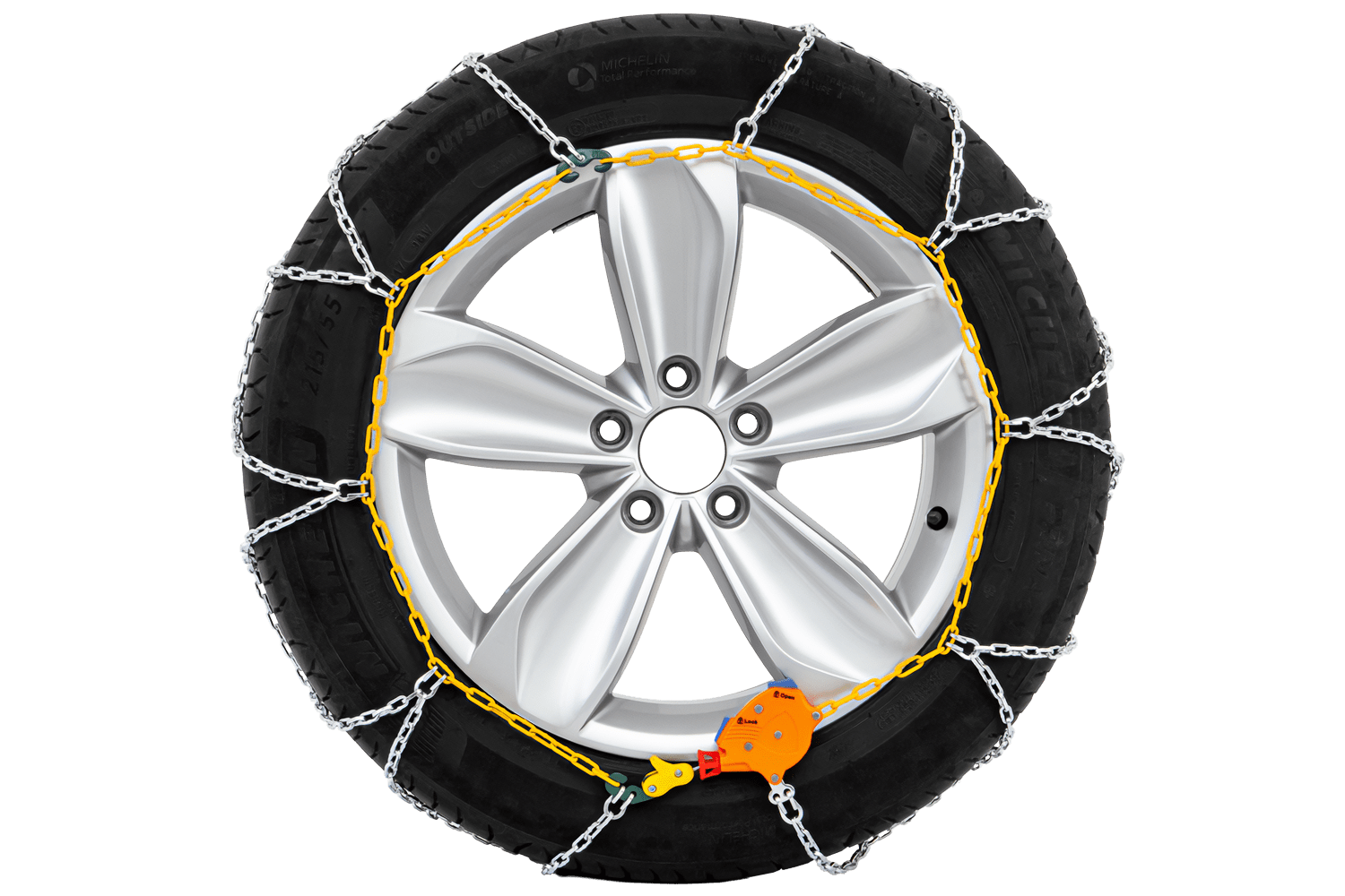 Ogniwo o grubości 9 mm zapewnia doskonały kompromis pomiędzy wytrzymałością a kompaktowymi wymiarami, co pozwala na stosowanie łańcuchów w większości samochodów osobowych. Wykonanie z hartowanej stali wysokiej jakości gwarantuje odporność na ścieranie, pękanie oraz długą żywotność produktu. Wzór rombowy (diamentowy) poprawia przyczepność, stabilność w zakrętach i skuteczność hamowania na śniegu i lodzie, co znacząco zwiększa bezpieczeństwo jazdy w zimowych warunkach.