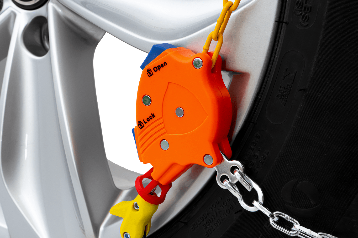 Zastosowany system samonapinający eliminuje konieczność zatrzymywania się po kilku metrach, by dociągnąć łańcuch – napięcie reguluje się automatycznie podczas jazdy. Dzięki temu montaż i demontaż są wyjątkowo szybkie i intuicyjne, nawet w niesprzyjających warunkach atmosferycznych.