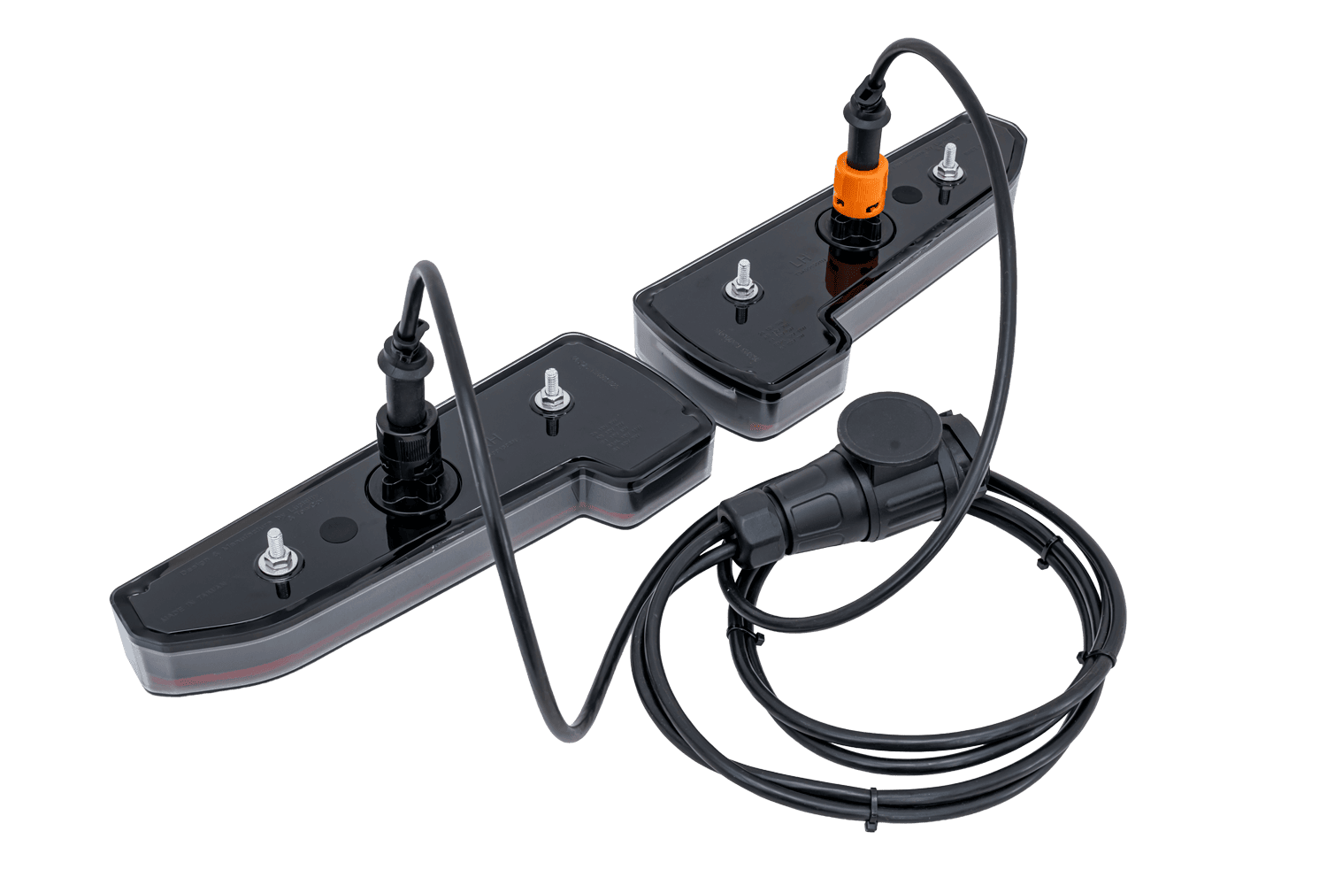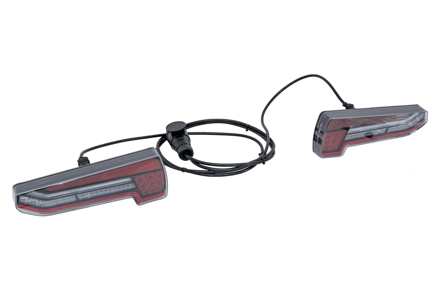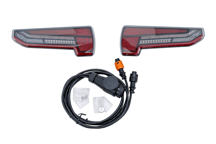 Kompletny zestaw zawierający lampy LED oraz wiązkę elektryczną z wtyczką 13-PIN do boxa na hak Towbox V3 LED.