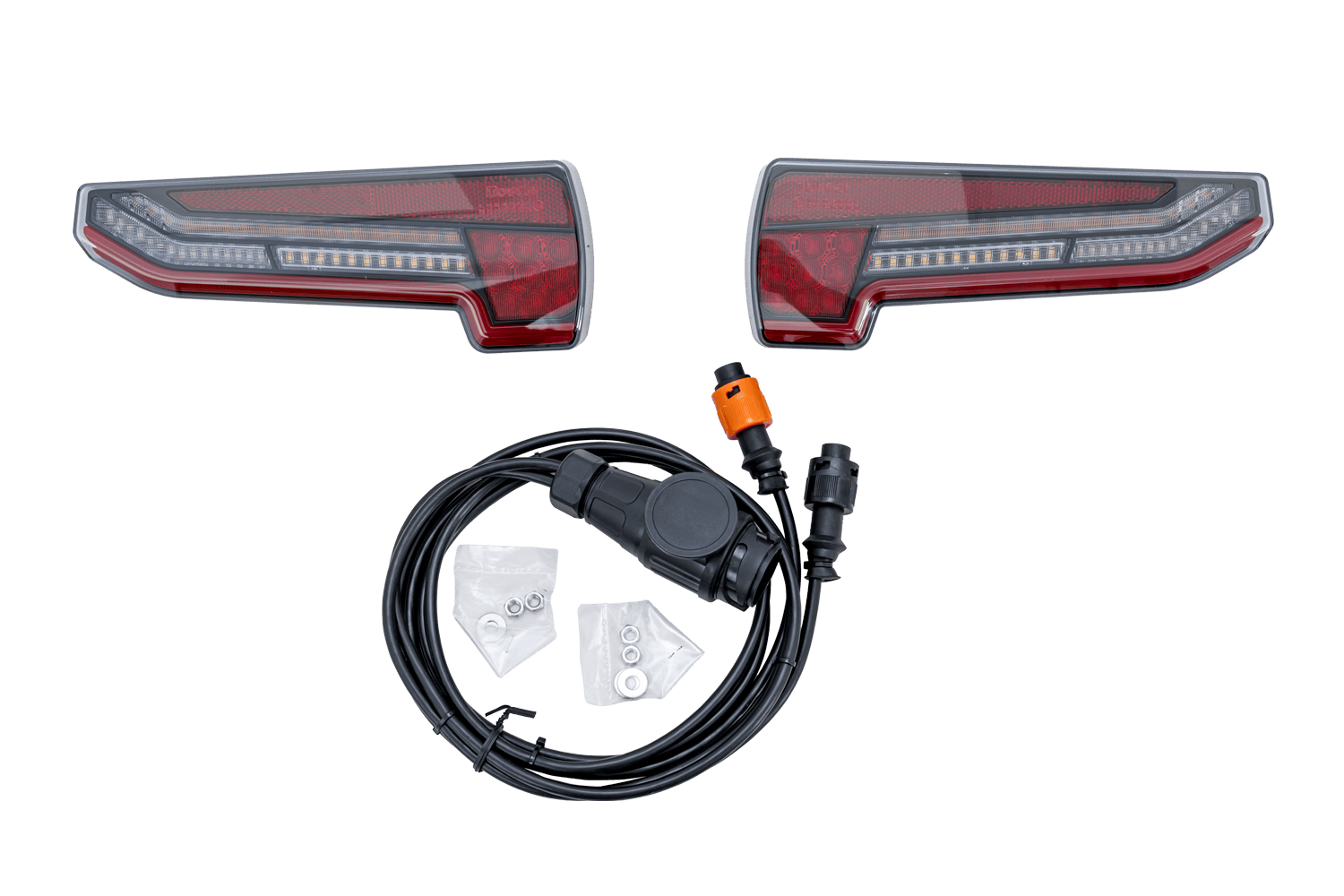- Kompletny zestaw lamp LED i wiązki wraz z wtyczką 13-pin.