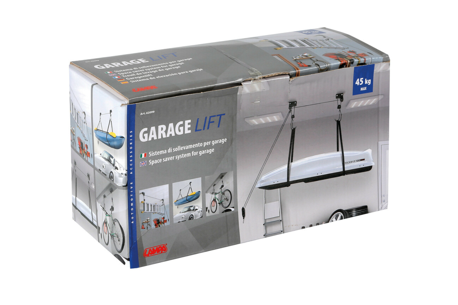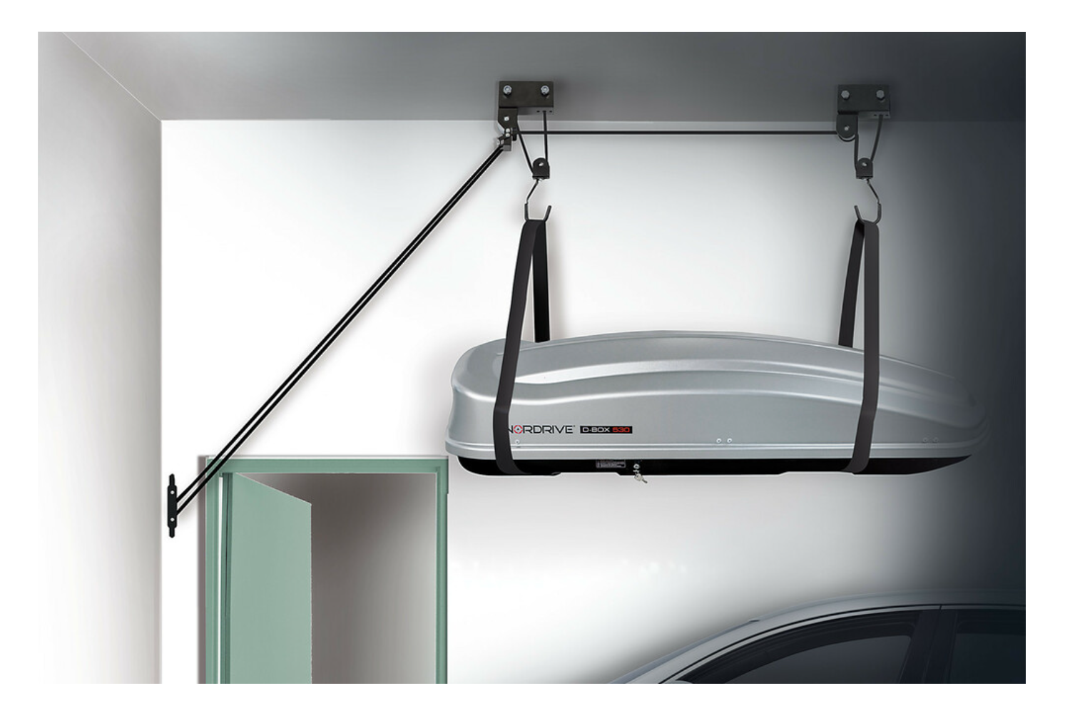 System doskonale sprawdzi się do przechowywania boxów dachowych, kajaków, canoe, rowerów czy drabin o maksymalnej wadze do 45 kg. Pozwala utrzymać porządek w garażu, chroni sprzęt przed uszkodzeniem i zapewnia łatwy dostęp wtedy, gdy jest potrzebny.