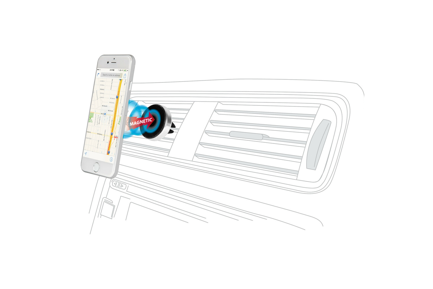 - Magneto to uniwersalny uchwyt magnetyczny na telefon montowany na kratce nawiewu. Umożliwia szybkie i stabilne mocowanie smartfona podczas jazdy. W zestawie znajdują się metalowe płytki pozwalające korzystać z uchwytu z większością modeli telefonów.