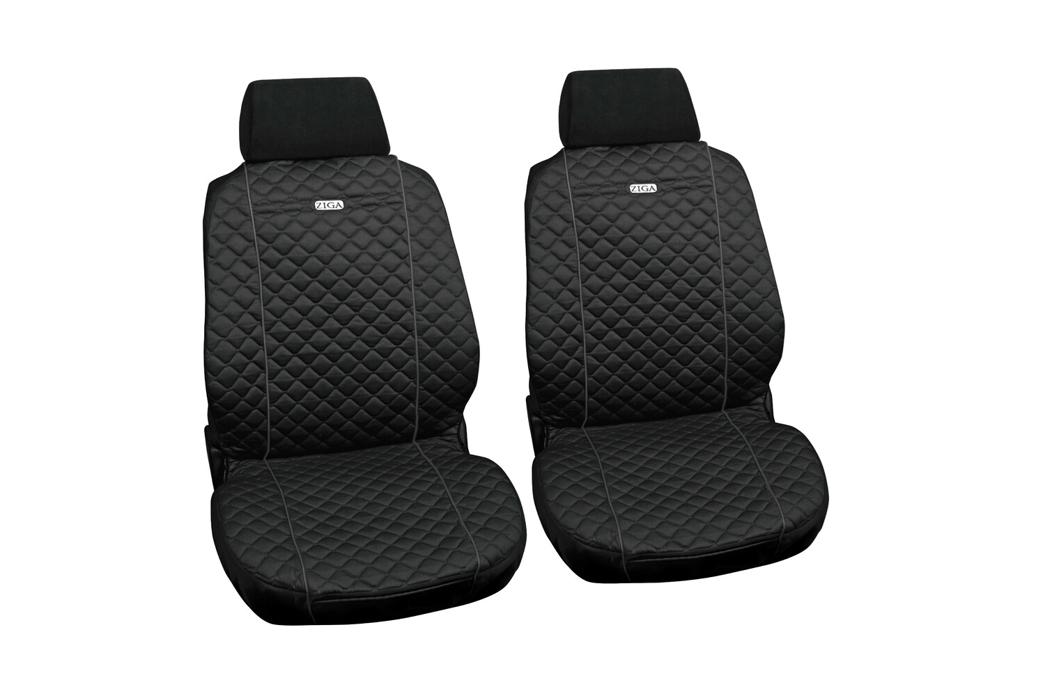 - Czarne pokrowce Ziga to uniwersalny zestaw na dwa przednie fotele wykonany z grubej, pikowanej bawełny. Skutecznie chronią tapicerkę przed zużyciem i zabrudzeniami. Idealne do aut użytkowanych na co dzień, służbowych lub rodzinnych.