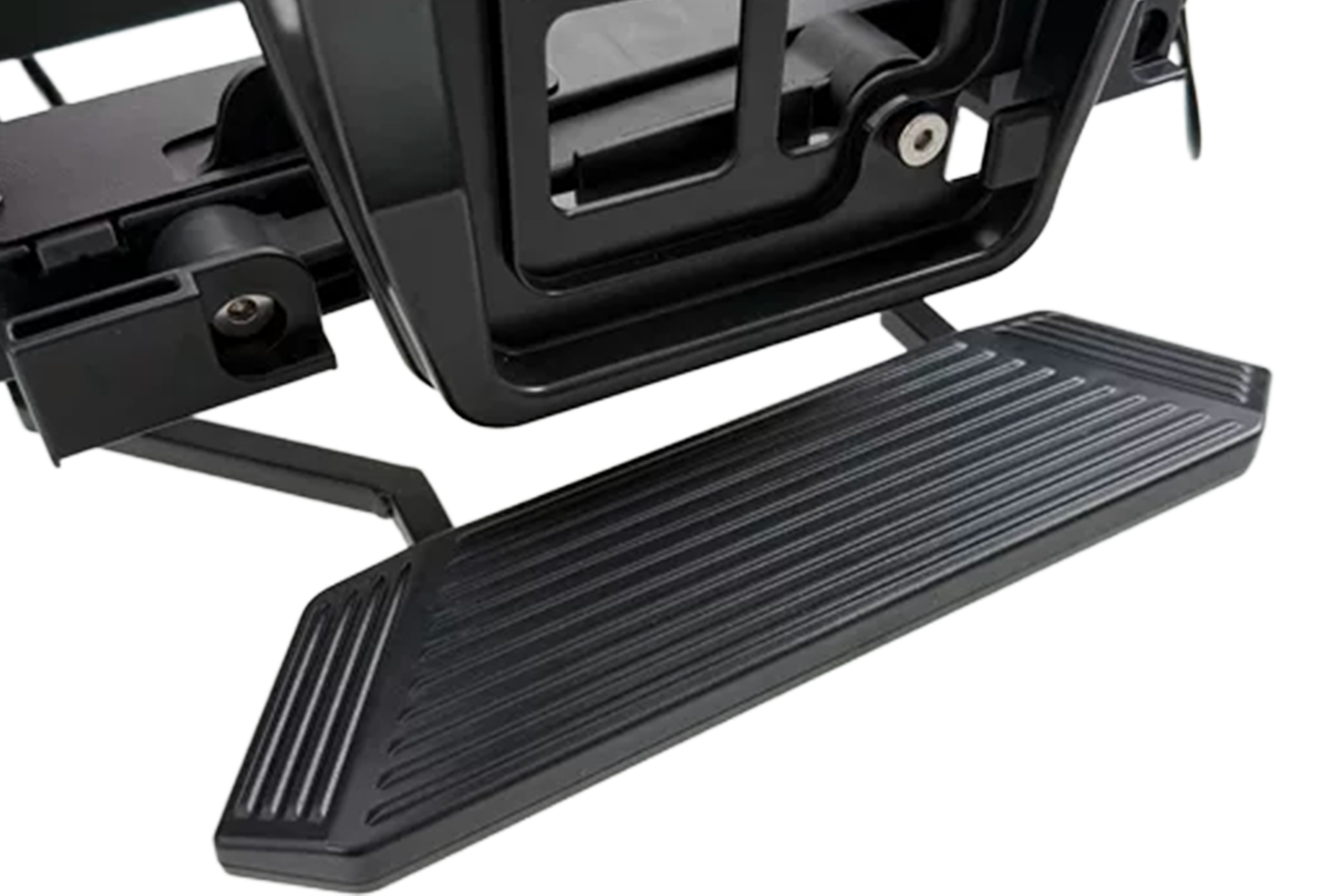 Dzięki funkcji uchylania, uruchamianej wygodną dźwignią nożną, możliwy jest swobodny dostęp do bagażnika nawet przy zamontowanych rowerach. Platforma posiada zintegrowane oświetlenie LED o nowoczesnym designie oraz uchwyt na tablicę rejestracyjną, tworząc kompletny i funkcjonalny zestaw.